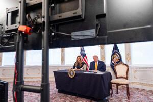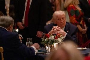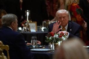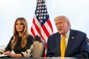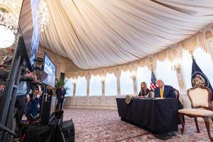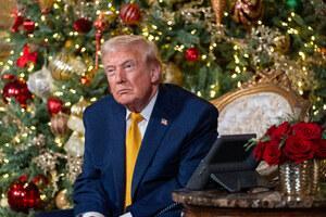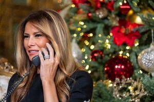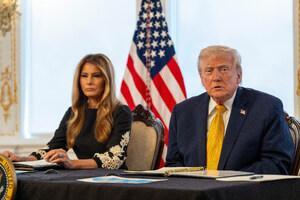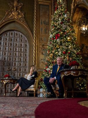 Il presidente Donald Trump e la first lady Melania Trump durante una chiamata del NORAD presso il suo club di Mar-a-Lago