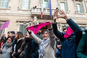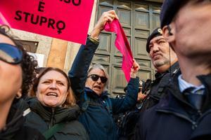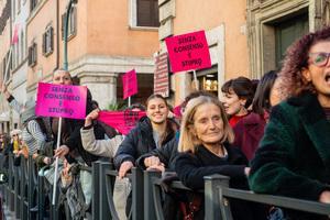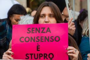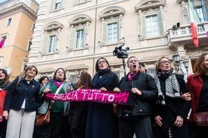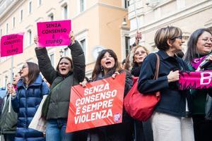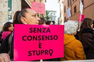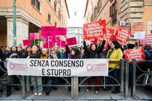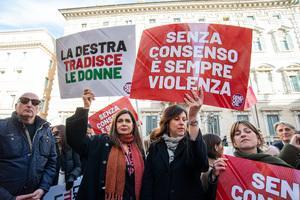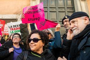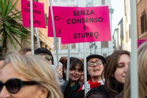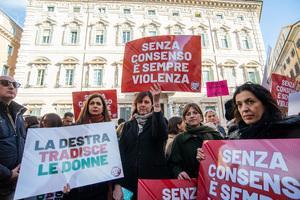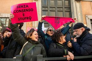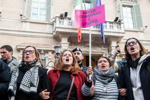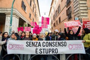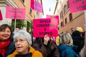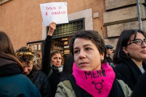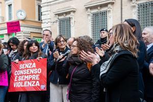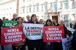 Manifestazione davanti al Senato contro la legge per il 'consenso' a Roma