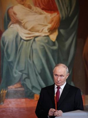 Putin alla celebrazione religiosa della Pasqua ortodossa nella Cattedrale di Cristo Salvatore a Mosca