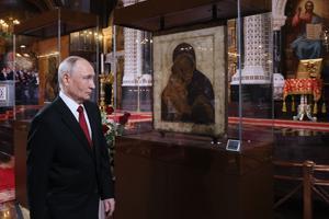 Putin alla celebrazione religiosa ortodossa di Pasqua nella Cattedrale di Cristo Salvatore a Mosca