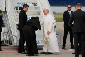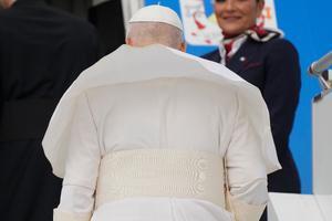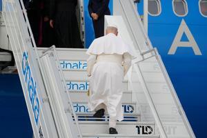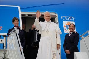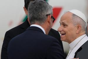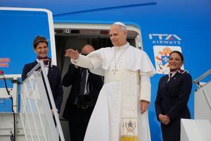 Papa Leone XIV si imbarca per Algeri all'aeroporto internazionale Leonardo da Vinci-Fiumicino di Roma