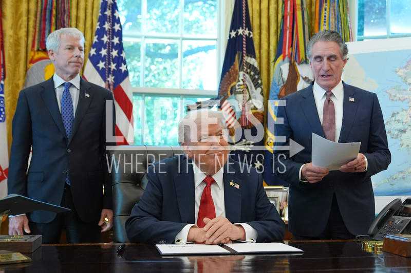 Il presidente Donald Trump firma un nuovo ordine esecutivo nello Studio Ovale della Casa Bianca
