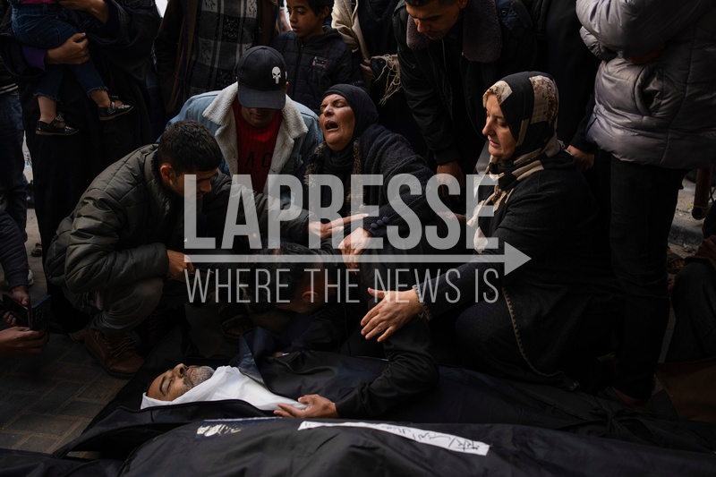 FILE.- Palestinians mourn relatives killed in a Israel strike at a hospital morgue in Rafah, southern Gaza Strip, on March 4, 2024. (AP Photo/Fatima Shbair,File)