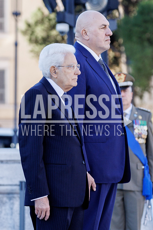 President of the Republic Sergio Mattarella (right) and Minister of Defense Guido Crosetto during the celebration of the “Day of National Unity and the Armed Forces” at the Altar of the Fatherland, Rome, Tuesday, November 4, 2025 (Photo by Roberto Monaldo / LaPresse)