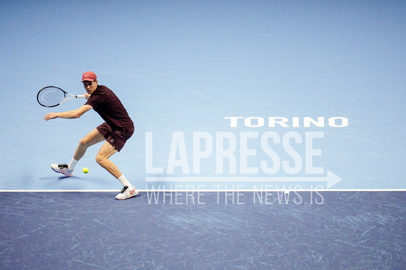 Italy's Jannik Sinner returns the ball to Germany's Alexander Zverev during the singles tennis match of the ATP World Tour Finals at the Inalpi Arena in Turin, Italy - Wednesday, Nov. 12, 2025. Sport - (Photo by Marco Alpozzi/Lapresse)