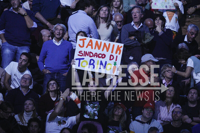 Fan during the singles tennis match of the ATP World Tour Finals Italy's Jannik Sinner against Germany's Alexander Zverev at the Inalpi Arena in Turin, Italy - Wednesday, Nov. 12, 2025. Sport - (Photo by Marco Alpozzi/Lapresse)