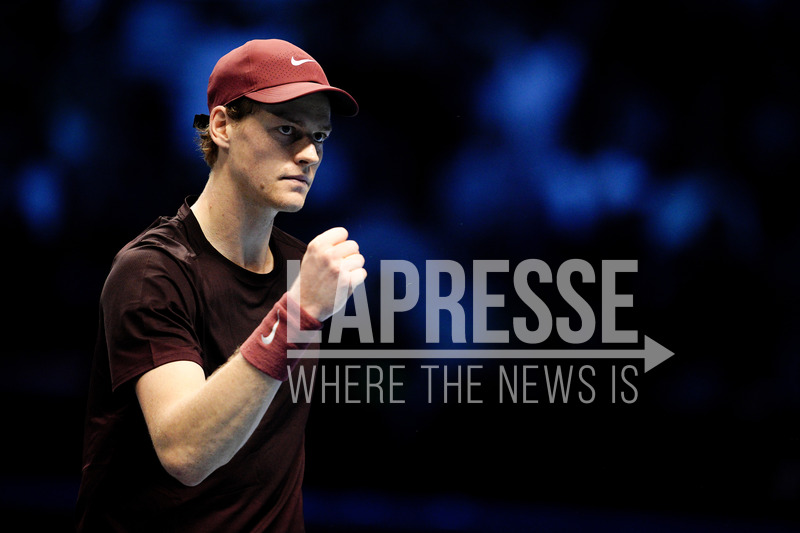 Italy's Jannik Sinner react during the singles tennis match of the ATP World Tour Finals against Italy's Jannik Sinner at the Inalpi Arena in Turin, Italy - Wednesday, Nov. 12, 2025. Sport - (Photo by Marco Alpozzi/Lapresse)
