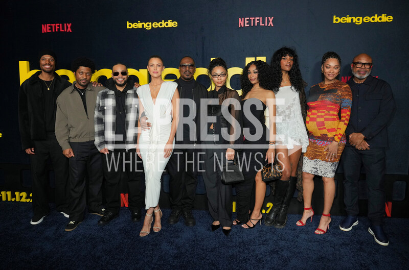 Miles Mitchell Murphy, from left, Christian Murphy, Eric Murphy, Paige Butcher, Eddie Murphy, Bella Murphy, Shayne Audra Murphy, Zola Ivy Murphy and Bria Murphy arrive at the premiere of "Being Eddie" on Wednesday, Nov. 12, 2025, at Netflix Tudum Theater in Los Angeles. (Photo by Jordan Strauss/Invision/AP)
