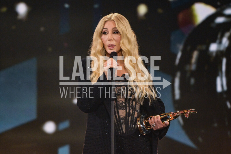 Cher speaks after receiving a BAMBI in the Legend category at the 77th Bambi award ceremony in the Bavaria Film Studios, Thursday, Nov. 13, 2025, in Grünwald, Germany. (Peter Kneffel/dpa via AP)
