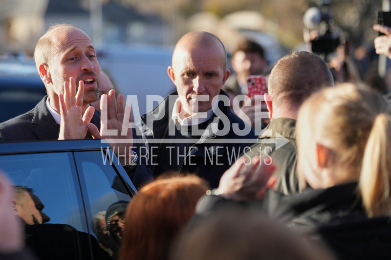 Britain\'s Prince William speak to the crowd as he desert after a visit to Youth Shedz in Mochdre, Colwyn Bay, Wales, Tuesday, Nov. 25, 2025. (AP Photo/Jon Super, Pool)