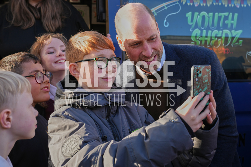 Britain\'s Prince William poses for a picture as he visits Youth Shedz in Mochdre, Colwyn Bay, Wales, Tuesday, Nov. 25, 2025. (AP Photo/Jon Super, Pool)