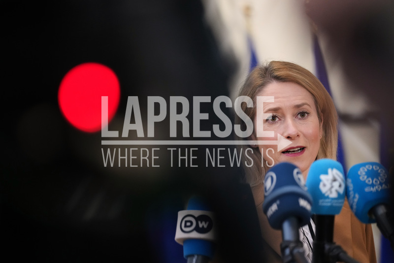 European Union foreign policy chief Kaja Kallas speaks with the media as she arrives for a meeting of EU foreign and defense ministers at the European Council building in Brussels, Monday, Dec. 1, 2025. (AP Photo/Virginia Mayo) Associate Press/ LaPresse Only Italy and Spain