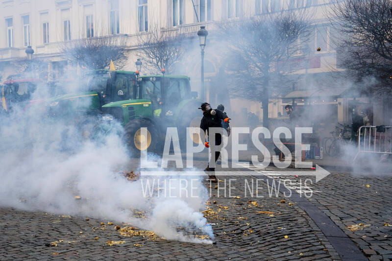 Manifestanti e agricoltori protestano fuori dal vertice dell'UE a Bruxelles