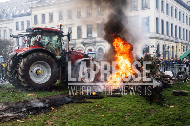 Manifestanti e agricoltori protestano fuori dal vertice dell'UE a Bruxelles