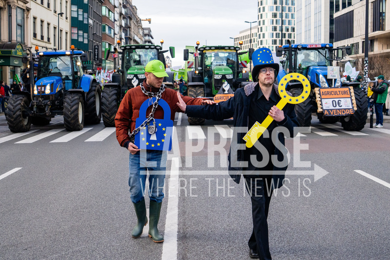 Manifestanti e agricoltori protestano fuori dal vertice dell'UE a Bruxelles
