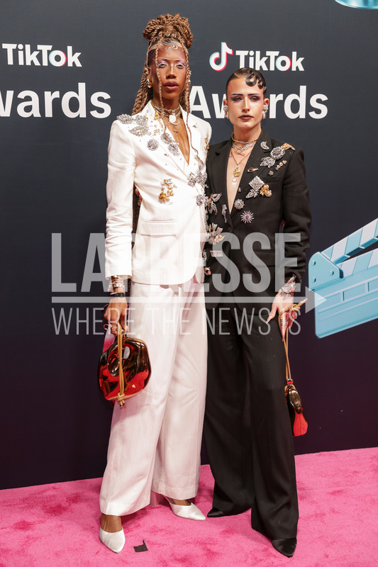 Adrian Patterson, left, and RJ Chumbley of the Goddess Boys arrive at the TikTok Awards on Thursday, Dec. 18, 2025, at the Hollywood Palladium in Los Angeles. (Photo by Andrew Park/Invision/AP)