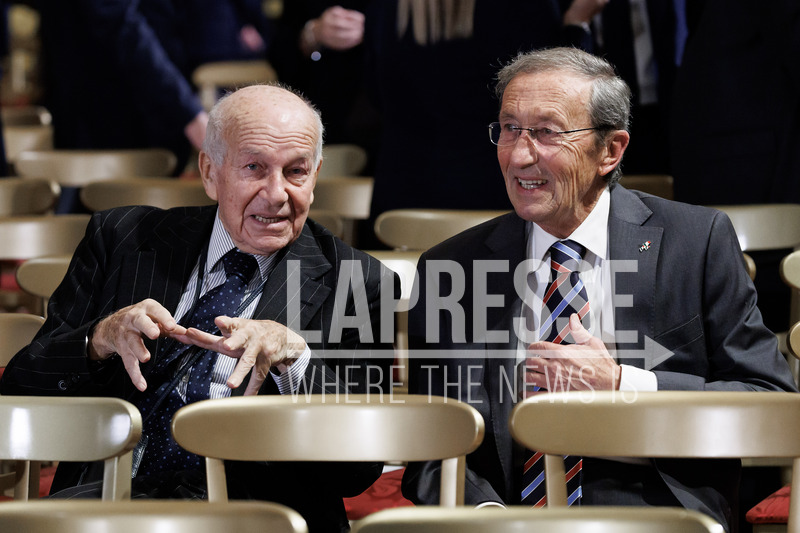 Fausto Bertinotti and Gianfranco Fini at the Quirinale during the ceremony for the exchange of end-of-year greetings with the representatives of the institutions, political forces and civil society, Rome, Friday, December 19, 2025 (Photo by Roberto Monaldo / LaPresse)