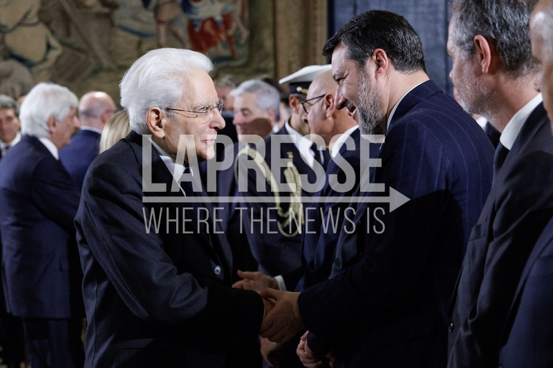 President of the Republic Sergio Mattarella and Matteo Salvini at the Quirinale during the ceremony for the exchange of end-of-year greetings with the representatives of the institutions, political forces and civil society, Rome, Friday, December 19, 2025 (Photo by Roberto Monaldo / LaPresse)