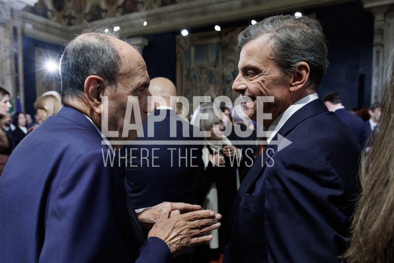 Renato Schifani and Carlo Calenda at the Quirinale during the ceremony for the exchange of end-of-year greetings with the representatives of the institutions, political forces and civil society, Rome, Friday, December 19, 2025 (Photo by Roberto Monaldo / LaPresse)
