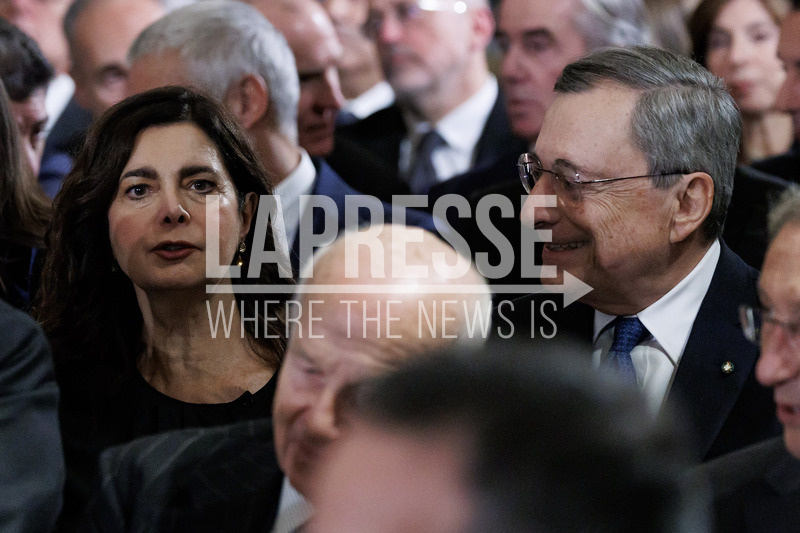 Laura Boldrini and Mario Draghi at the Quirinale during the ceremony for the exchange of end-of-year greetings with the representatives of the institutions, political forces and civil society, Rome, Friday, December 19, 2025 (Photo by Roberto Monaldo / LaPresse)