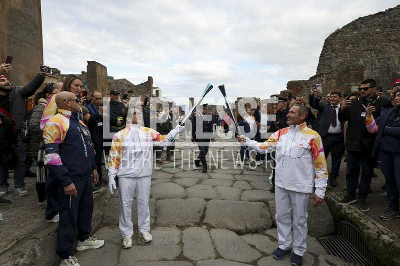 Pompei: December 22, 2025, Milan-Cortina 2026 Winter Olympics. The photo shows the Olympic torch passing through the Archaeological Park. Actor Jackie Chan (Photo by Alessandro Garofalo/LaPresse)