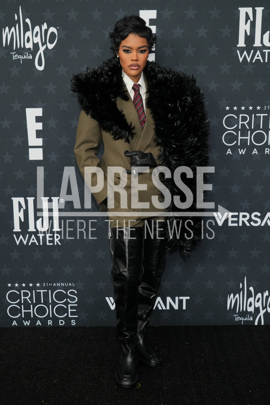 Teyana Taylor arrives at the 31st Annual Critics Choice Awards on Sunday, Jan. 4, 2026, at The Barker Hanger in Santa Monica, Calif. (Photo by Jordan Strauss/Invision/AP)