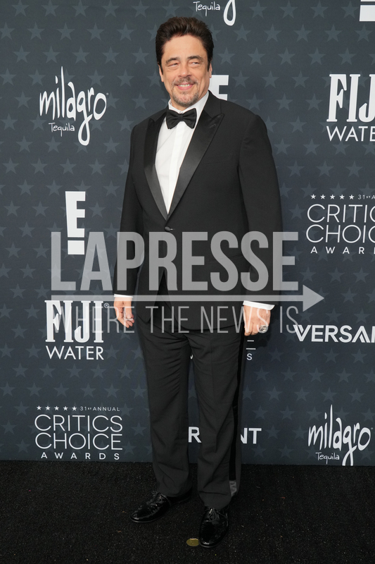 Benicio Del Toro arrives at the 31st Annual Critics Choice Awards on Sunday, Jan. 4, 2026, at The Barker Hanger in Santa Monica, Calif. (Photo by Jordan Strauss/Invision/AP)