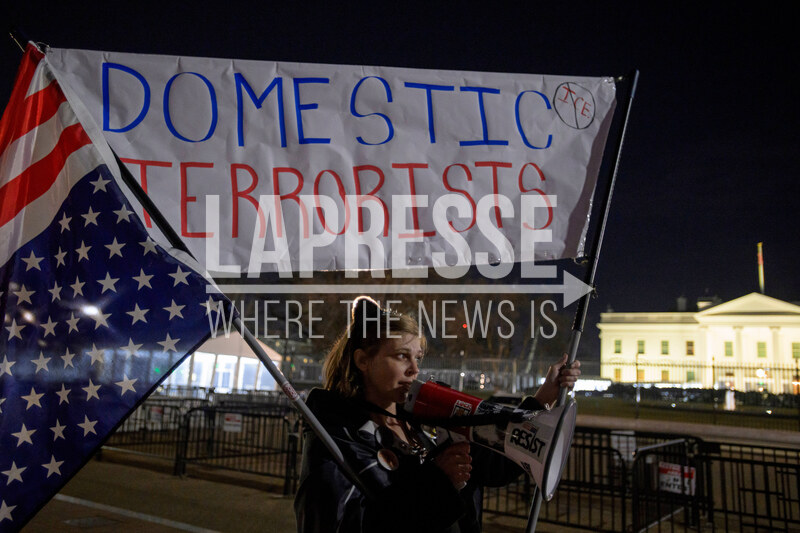 Heather Griffis joins others to protest U.S. Immigration and Customs Enforcement, near the White House, following the fatal shooting of a woman by an Immigration and Customs Enforcement officer in Minneapolis, Thursday, Jan. 8, 2026, in Washington. (AP Photo/Rod Lamkey, Jr.)