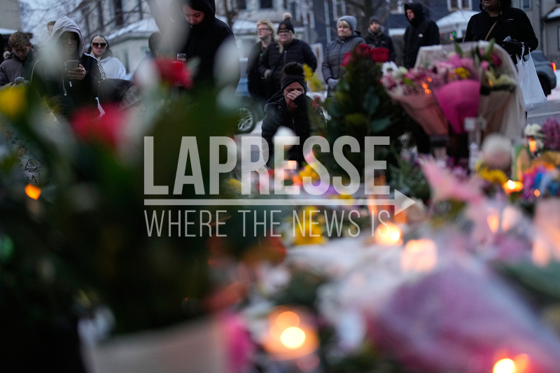 A woman gets emotional around a makeshift memorial honoring Renee Good, who was fatally shot by an ICE officer the day before, near the site of the shooting in Minneapolis, Thursday, Jan. 8, 2026. (AP Photo/John Locher)