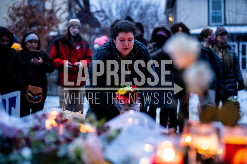 People pay their respects at a memorial honoring a woman who was fatally shot by an Immigration and Customs Enforcement officer the day before, near the site of the shooting in Minneapolis, Thursday, Jan. 8, 2026. (Christopher Katsarov/The Canadian Press via AP)