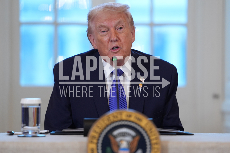 Presidente Trump parla durante un incontro con i dirigenti del settore petrolifero nella Sala Est della Casa Bianca.