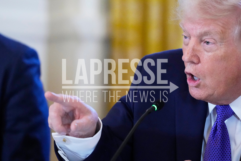 Presidente Trump parla durante un incontro con i dirigenti del settore petrolifero nella Sala Est della Casa Bianca.