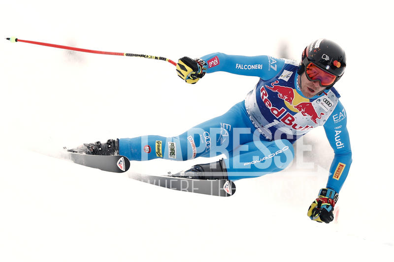 Italy's Mattia Casse speeds down the course during a men's alpine ski World Cup downhill, in Kitzbuehel, Austria, Saturday, Jan. 24, 2026. (AP Photo/Gabriele Facciotti)