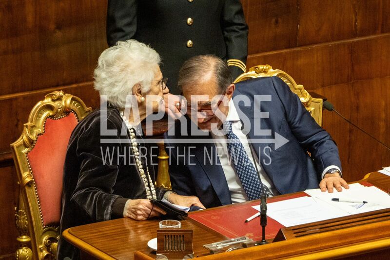 La senatrice a vita Liliana Segre e il presidente del Senato Ignazio La Russa nell'aula del Senato durante la celebrazione del Giorno della Memoria 27 Gennaio 2026, Roma, Italia (Foto Ufficio stampa Senato/LaPresse) Senator for Life Liliana Segre and Senate President Ignazio La Russa in the Senate Chamber during the celebration of Holocaust Remembrance Day January 27, 2026, Rome, Italy (Photo by Senate Press Office/LaPresse) DISTRIBUTION FREE OF CHARGE - NOT FOR SALE