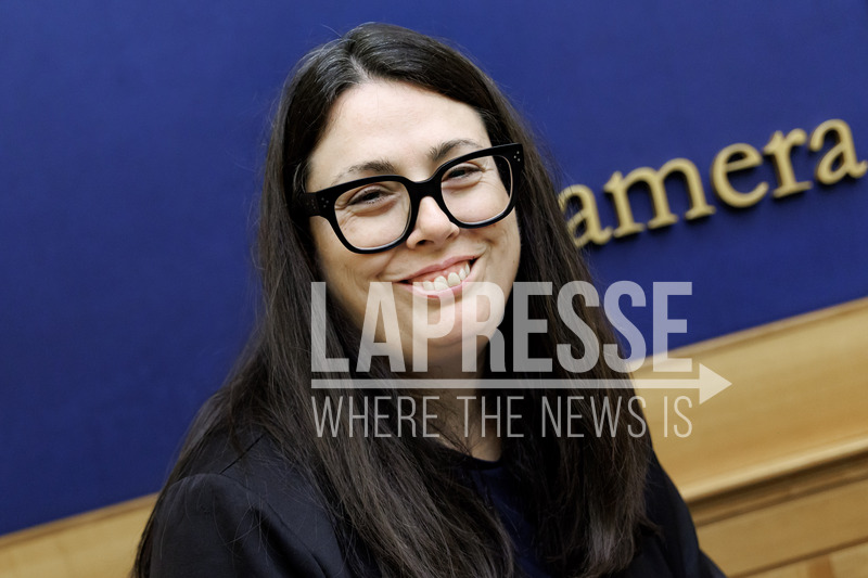 M5S MP Stefania Ascari in the press room of the Chamber of deputies during the presentation of the new Report on Gaza entitled "Genocide in Gaza: a collective crime”, Rome, Tuesday February 3, 2026 (Photo by Roberto Monaldo /LaPresse)