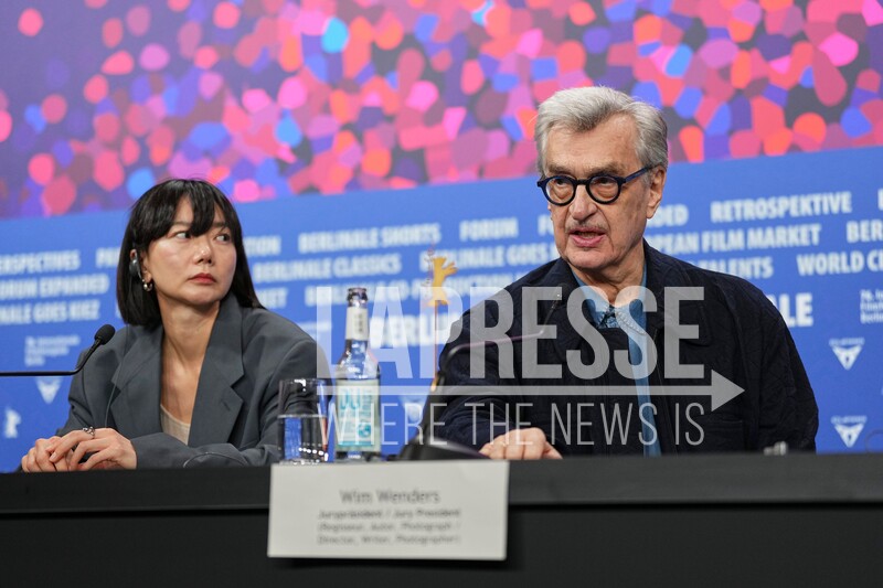 Bae Doona, from left, and Jury president Wim Wenders attend the press conference for the Jury of the International Film Festival, Berlinale, in Berlin, Thursday, Feb. 12, 2026. (Photo by Scott A Garfitt/Invision/AP).