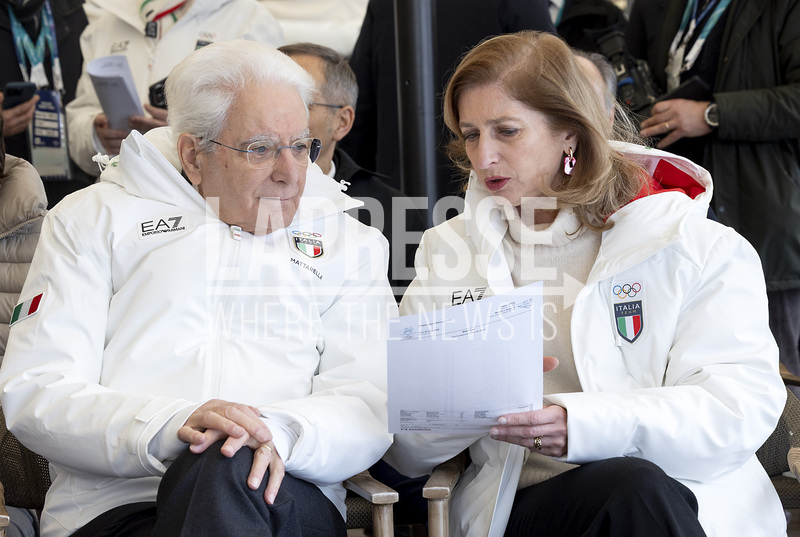 Il Presidente della repubblica Sergio Mattarella si congratura con Federica Brignone dopo l\'oro nel Super G a Cortina, Italia 12 febbraio 2026 Foto Ufficio Stampa Quirinale/LaPresse (Foto di Paolo Giandotti - Ufficio per la Stampa e la Comunicazione della Presidenza della Repubblica) DISTRIBUTION FREE OF CHARGE - NOT FOR SALE