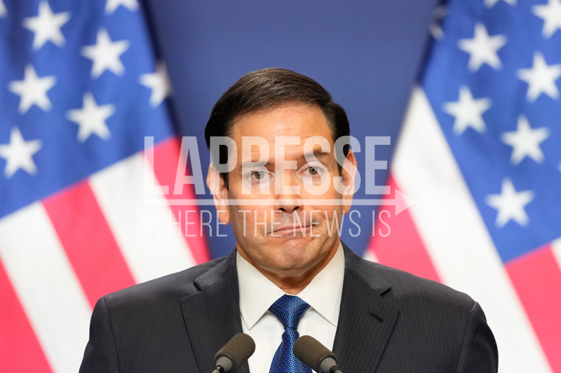 U.S. Secretary of State Marco Rubio grimaces during a news conference with Hungary\'s Prime Minister Viktor Orban in Budapest, Hungary, Monday, Feb. 16, 2026. (AP Photo/Alex Brandon, Pool)