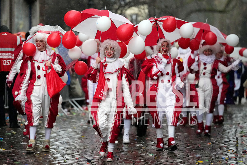 Carnival revellers take part in the Rosemonday Carnival Parade in Duesseldorf, Germany, Monday, Feb. 16, 2026 (AP Photo/Martin Meissner)