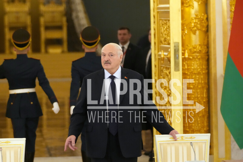 Belarusian President Alexander Lukashenko arrives to attend a meeting of the supreme council of the Union State with Russian President Vladimir Putin at the Grand Kremlin Palace in Moscow, Thursday, Feb. 26, 2026. (AP Photo/Pavel Bednyakov, Pool)
