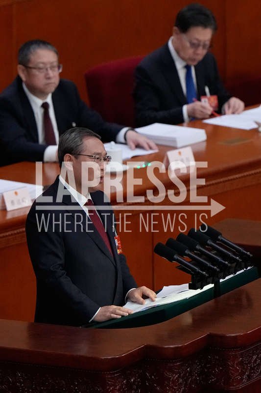 Chinese Premier Li Qiang speaks during opening session of the National People's Congress (NPC) in Beijing, Thursday, March 5, 2026. (AP Photo/Andy Wong) Associate Press/ LaPresse Only Italy and Spain