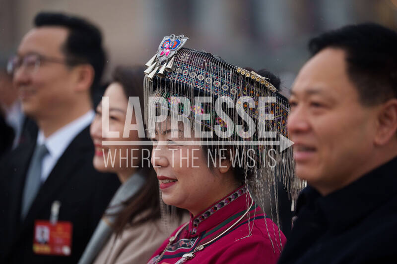 Ethnic minority delegates arrive to attend the opening session of the National People's Congress (NPC) in Beijing, China, Thursday, March 5, 2026. (AP Photo/Vincent Thian)