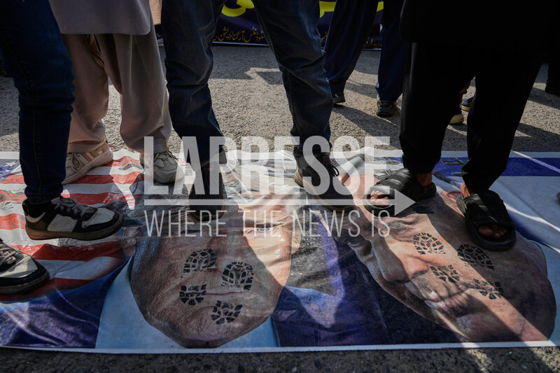 Shiite Muslims stands over the representation of U.S. and Israeli flags with pictures of President Donald Trump and Prime Minister Benjamin Netanyahu during a rally to condemn the killing of Iranian Supreme Leader Ayatollah Ali Khamenei and against the Israeli strikes on Iran, in Islamabad, Pakistan, Friday, March 6, 2026. (AP Photo/Anjum Naveed)