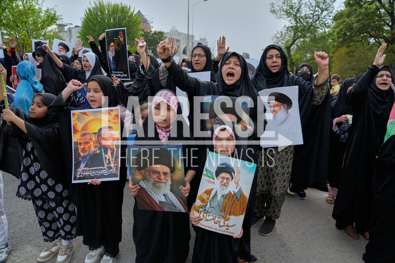 Shiite Muslim women and children take part in a rally to condemn the killing of Iranian Supreme Leader Ayatollah Ali Khamenei and against the Israeli strikes on Iran, in Islamabad, Pakistan, Friday, March 6, 2026. (AP Photo/Anjum Naveed)