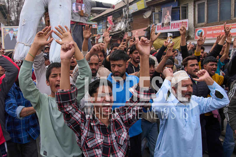Shiite Muslims shout slogans during a protest against the killing of Iran's Supreme Leader Ayatollah Ali Khamenei, in Budgam, northeast of Srinagar, Indian controlled Kashmir, Friday, March 6, 2026. (AP Photo/Dar Yasin)