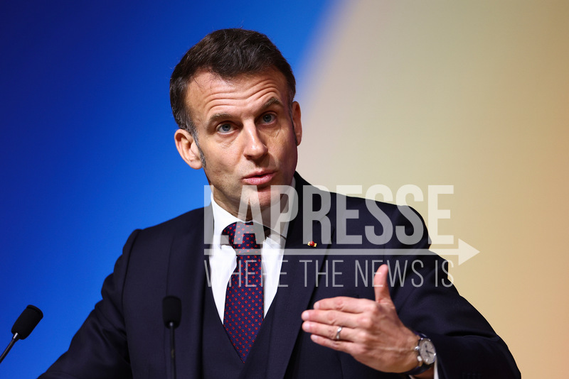 French President Emmanuel Macron delivers a speech during the opening plenary session at the IAEA Nuclear Energy Summit in Paris, Tuesday March 10, 2026. (Abdul Saboor, Pool Photo via AP)