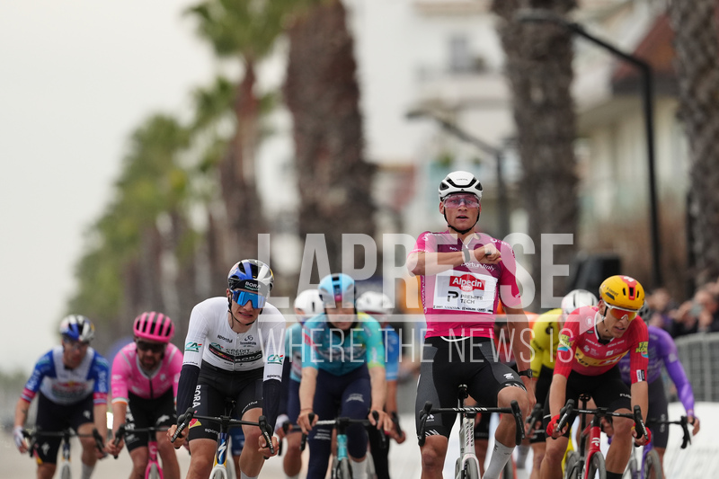 Van Der Poel Mathieu Of Alpecin-Premier Tech winner of the stage during the 213-kilometer Stage 4 of the Tirreno-Adriatico cycling race from Tagliacozzo to Martinsicuro - Italy,- Thursday, March 12, 2026. Sport - cycling . (Photo by Massimo Paolone/LaPresse)