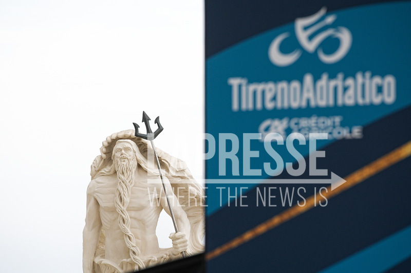 statue of the triton near podium after the 213-kilometer Stage 4 of the Tirreno-Adriatico cycling race from Tagliacozzo to Martinsicuro - Italy,- Thursday, March 12, 2026. Sport - cycling . (Photo by Marco Alpozzi/Lapresse)