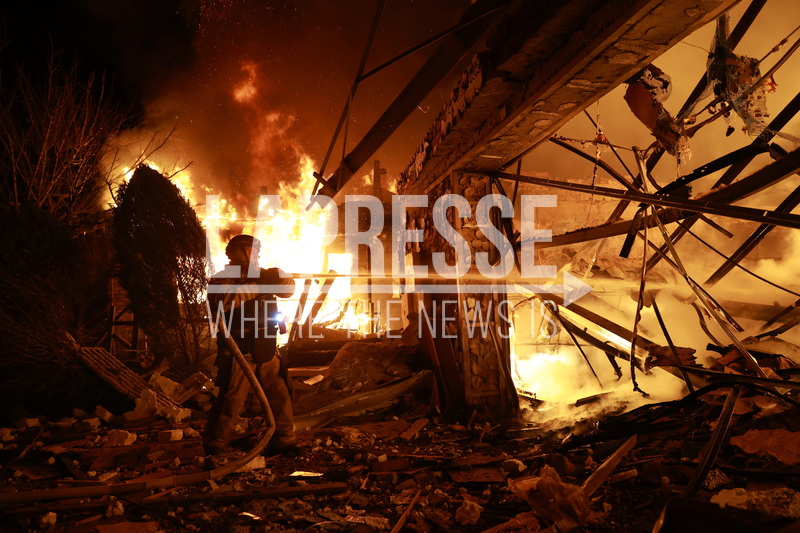 Firefighters try to put out a fire at a private house following a Russian drone attack in Zaporizhzhia, Ukraine, Monday, March 16, 2026. (AP Photo/Kateryna Klochko)