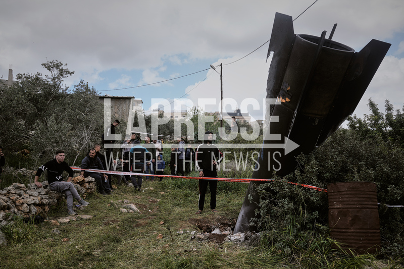 Frammento di un missile iraniano caduto nel villaggio di Kifl Haris in Cisgiordania